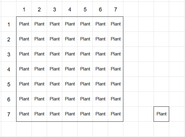 - 7' W x 7' D (plus 1 extra plant)